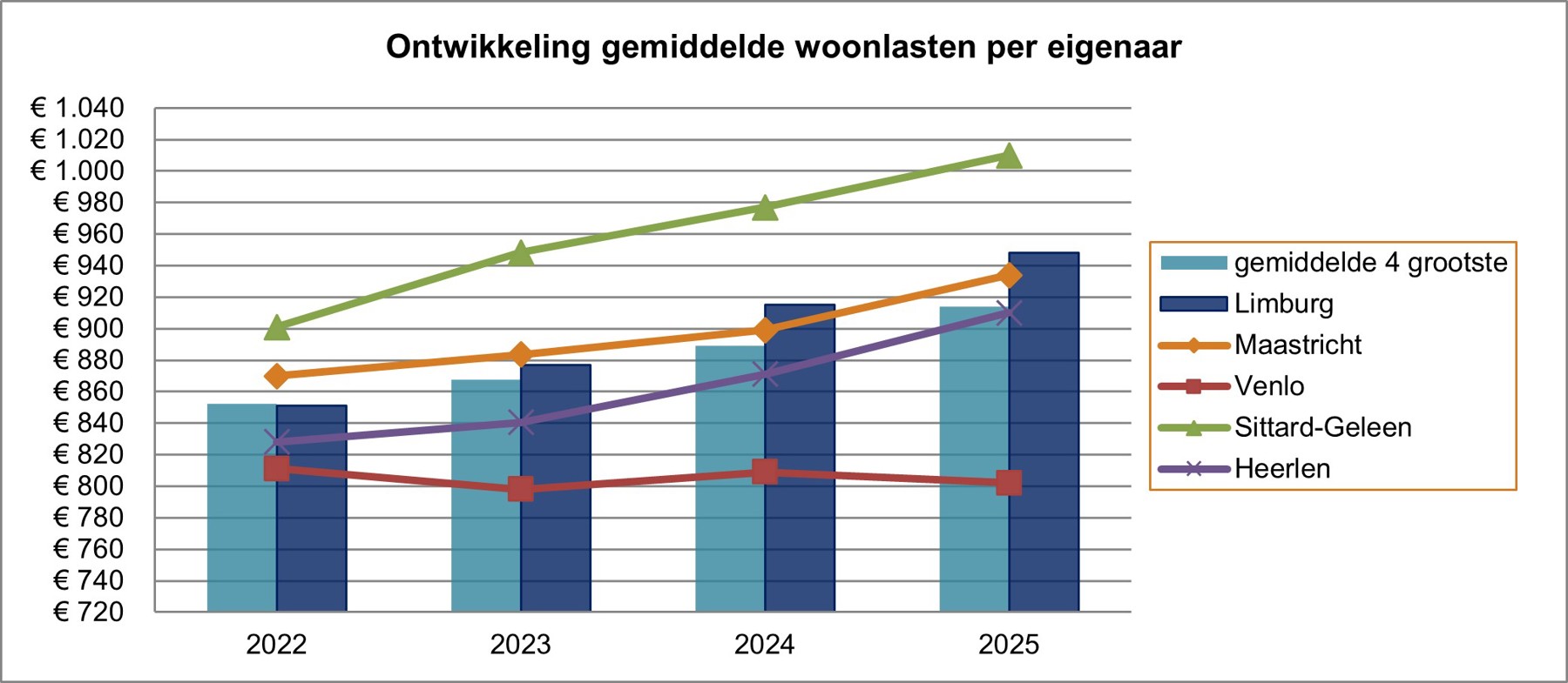 Tabel Woonlasten 2025 (eigenaar/gebruiker) 4 grootste gemeenten van Limburg
