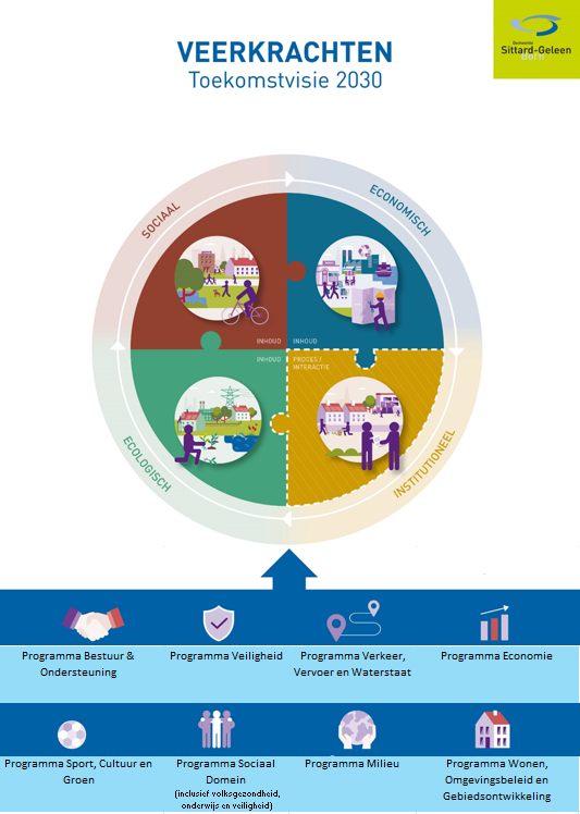 De programmabegroting op hoofdlijnen is opgebouwd aan de hand van de vier veerkrachten uit de Toekomstvisie 2030 die we in 2020 samen met de samenleving hebben opgesteld. In de Toekomstvisie 2030 beschrijven we wat voor samenleving wij willen zijn in Sittard-Geleen. In de programmabegroting op hoofdlijnen geven we aan hoe we hier als gemeente in 2026 aan bij willen dragen.